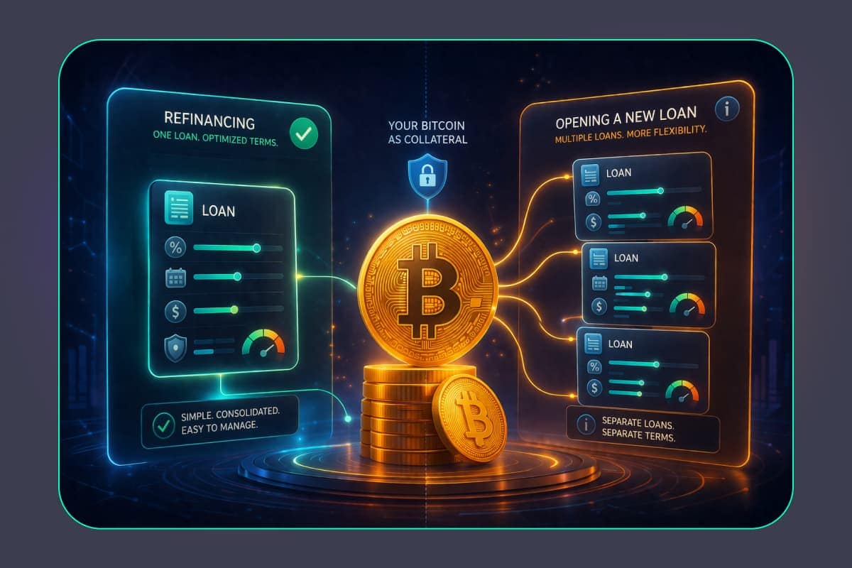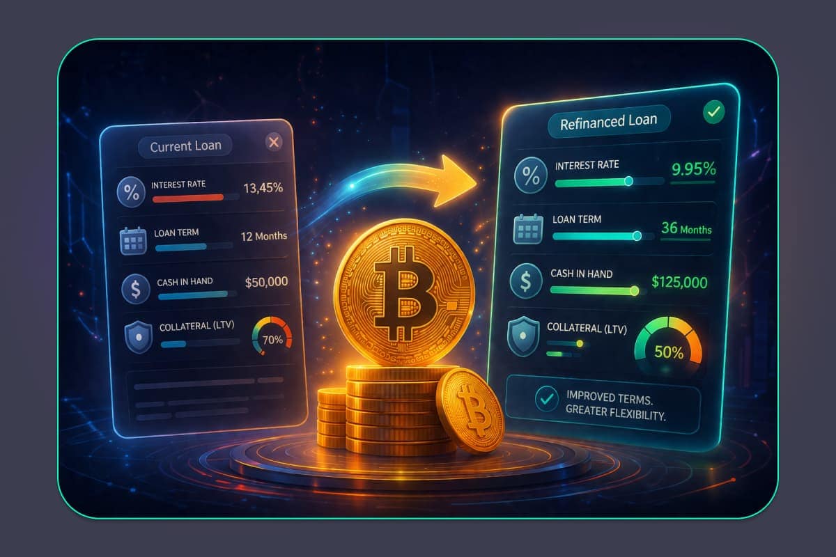 Refinancing in bitcoin-backed lending means replacing your existing loan with a new one under updated terms, while your bitcoin remains posted as collateral. It typically does not require selling your BTC.