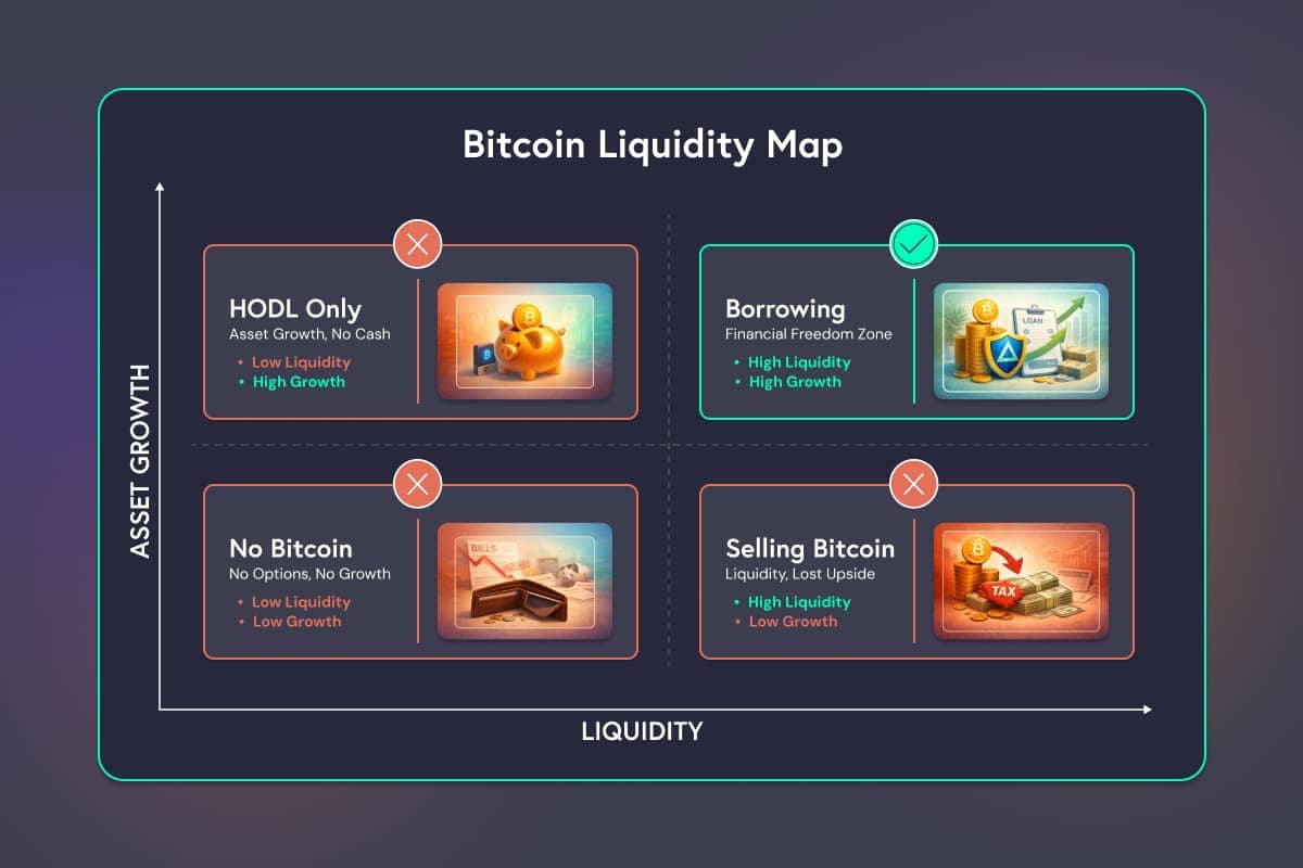 On the other end, selling solves the liquidity problem immediately. You access cash, meet your needs, and move forward. But that decision often comes at a cost: reduced exposure to Bitcoin’s future appreciation, and in many cases, a taxable event that further erodes value.